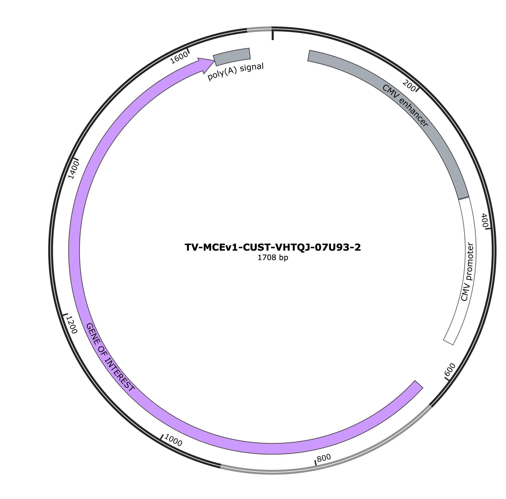 TrueVector-CMV-Custom (AmpR, High Copy) is a high-yield expression plasmid engineered for robust, transient expression of your gene of interest in mammalian cells. It features a CMV-derived promoter optimized for strong transcription across a wide range of cell types.